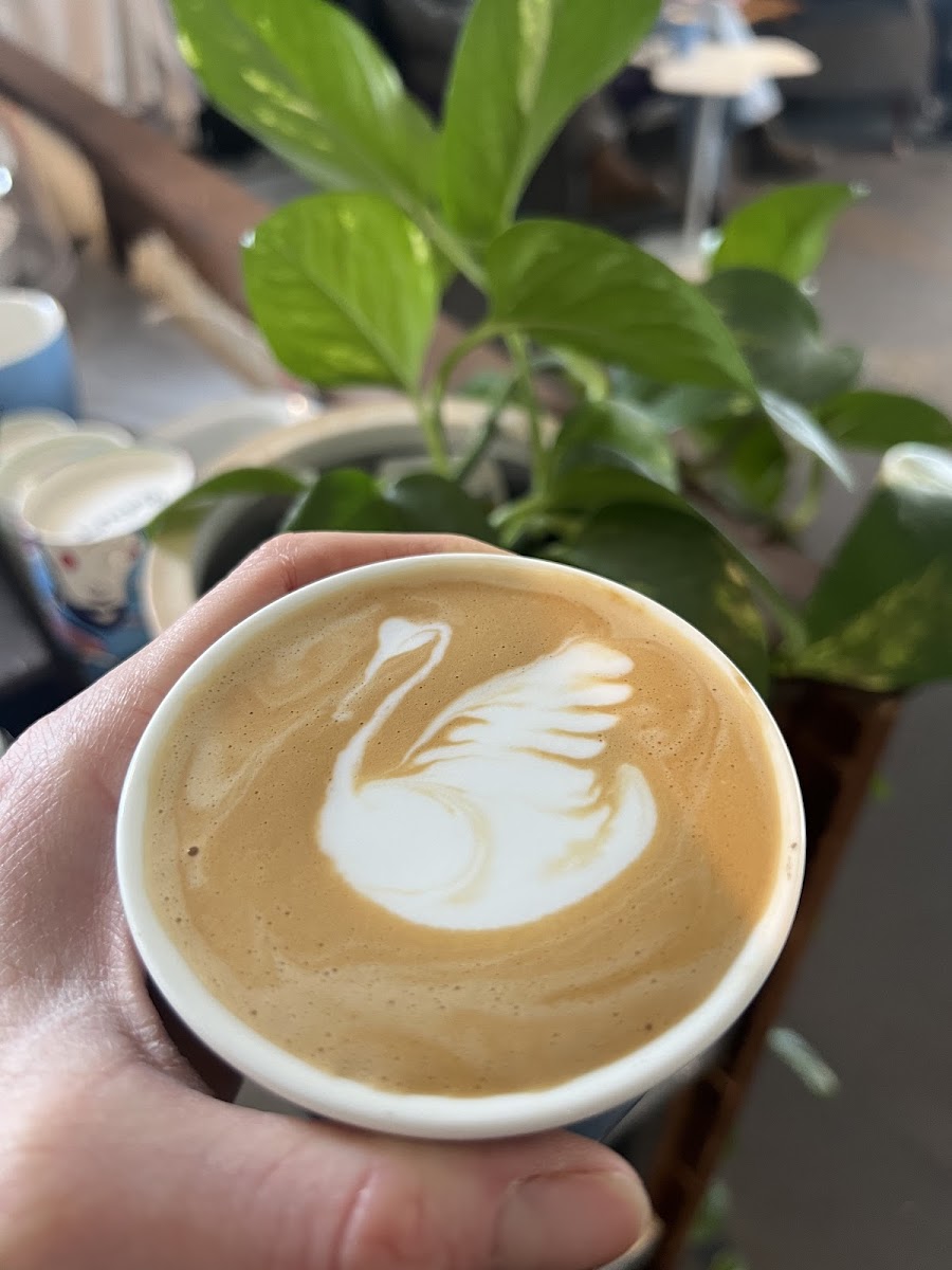 The atmosphere here leans into cozy and quirky. Inside, you might find repurposed furniture like a cot-turned-couch or an aquarium bathtub that doubles as a living art piece, creating a space that feels lived-in and thoughtfully curated rather than staged. This blend of comfort and odd charm encourages lingering over a cup rather than a quick grab-and-go.